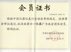中國(guó)儀器儀表行業(yè)協(xié)會(huì)會(huì)員證書(shū)